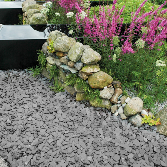 Black Grey Slate is almost black when wet and dark grey when dry. This natural slate is available in 20mm and 40mm sizes.