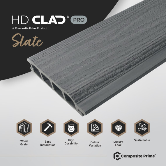 Composite Prime HD Clad Pro provides a low maintenance, durable alternative to traditional timber cladding that is available in a range of natural colours. The invisible clip fixings and trims allow for an uncomplicated installation which will transform the exterior of residential and commercial properties alike.