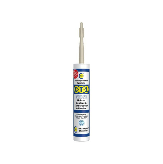 CT1 Beige is a powerful sealant and construction adhesive with the unique ability to bond a wide range of materials from concrete to glass, metal, wood, and many more. With CT1 in your toolbox, you'll no longer need additional fixings in most applications. Labour time is cut drastically, which means you can achieve mighty bonds sooner. CT1 Beige doesn't shrink or crack and it's completely odourless. Its UV resistance makes it excellent for outdoor applications. Not only that, but CT1 Beige is water-resistant. So, whether you want to seal a shower, fix a leaking roof, or seal a boat leak, CT1 can do it all.