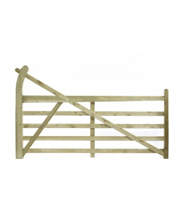 Our 5 bar Estate Gates feature an extended curved hanging stile. They are also reinforced by an extended diagonal brace with a planed smooth finish with stainless steel fittings.