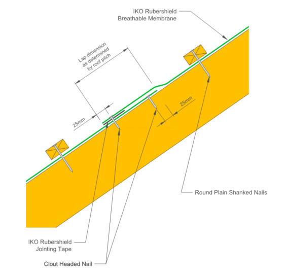 IKO Rubershield Eco Extra is a 120g / m² Type LR Breathable Membrane conforming to the requirements of BS5534:2014 when installed within a ventilated cold pitched roof construction. It is BBA approved* for use within cold and warm Unventilated Pitched Roof Construction and for use within Vertical Application.