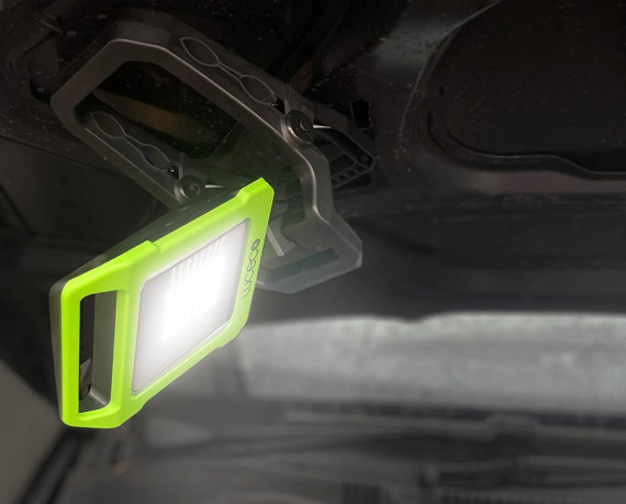 The Luceco rechargeable folding clamp work light is a versatile 10W work light that boasts a toughened IK07 ABS body, magnetic base, and dual modes for up to 5 hours of cool white (6500K) illumination, perfect for DIY and professional construction.