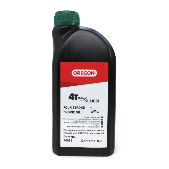 This Oregon 1L bottle of four stroke mineral oil is intended for summer use. The oil contains detergent and anti-wear additives which protect against corrosion and promote engine cleanliness. Since it is low volatility, you don't need to use as much oil.