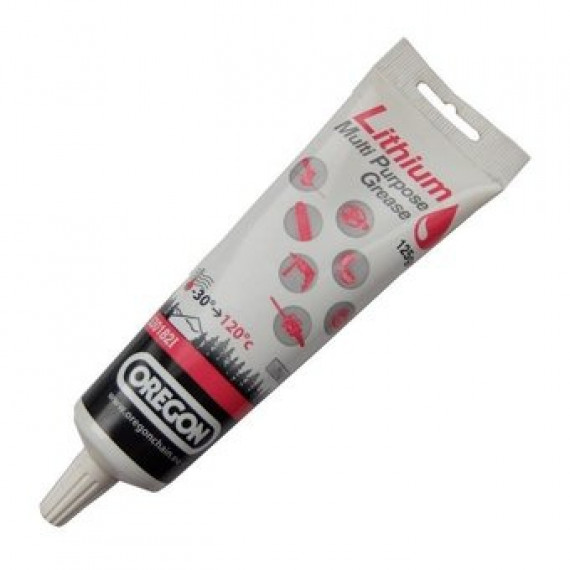 Oregon high quality lithium multi purpose grease performing over a wide temperature range of -30° to 120°C. It has a very high resistance to corrosion and water. It's used for angular and ball bearings, journal bearings, bevel gears, electric motors, seals & gaskets.