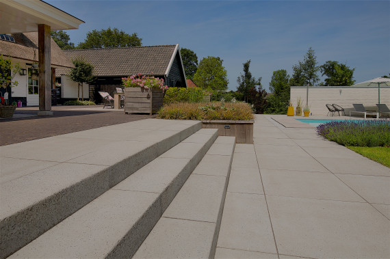 Schellevis concrete steps are available in two models. The block model has a slightly rounded bevelled top on one side and is available in corner pieces. You also have the L-shaped model which has a short upstanding edge on the top. These are both fantastic for bridging between elevations in gardens.
